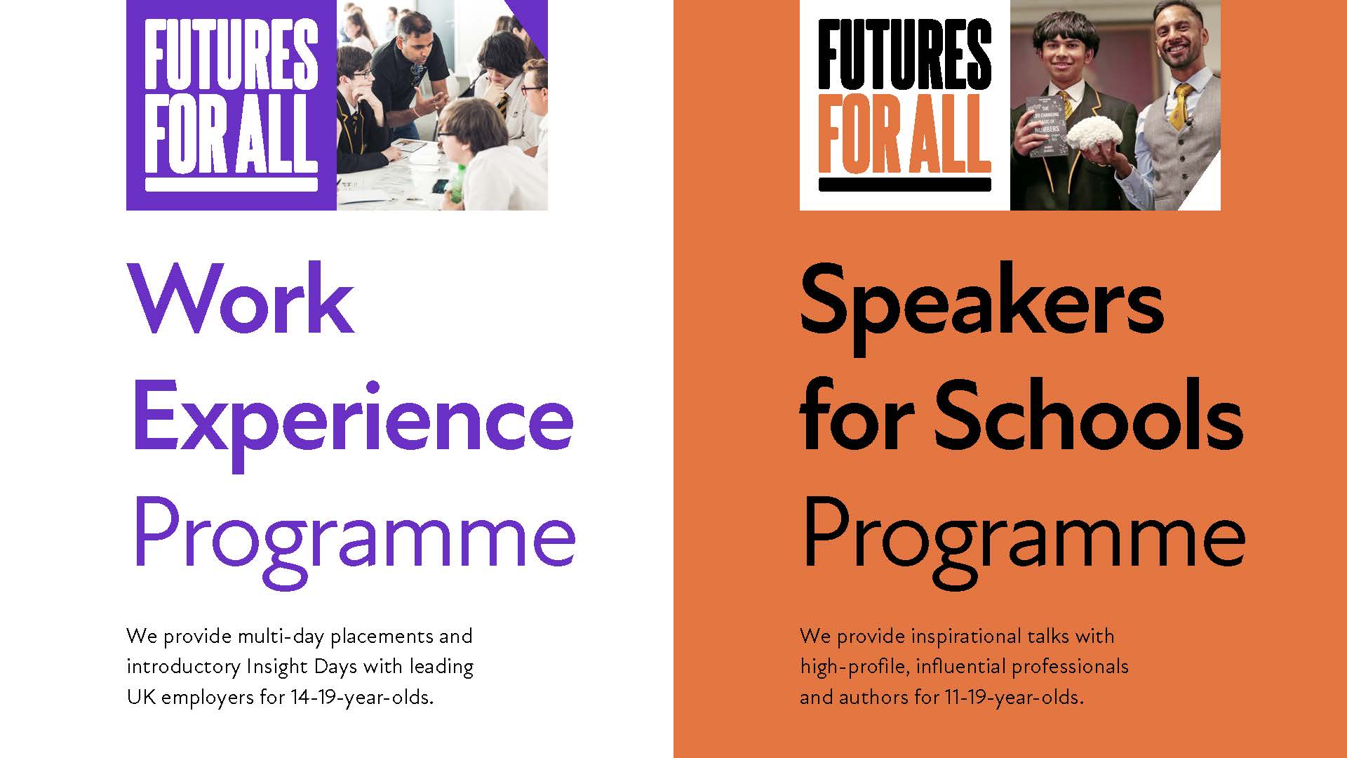 © 2025. Futures For All is a trading name of Speakers for Schools. A registered charity in England and Wales (no 1150411) and Scotland (SC046586). Also operating in Northern Ireland. Registered office: Unit 109, 30 Great Guildford St, London SE1 0HS.